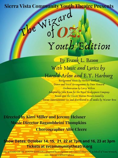 Wizard of Oz (Musical) A Youth Theatre Production Wizard of Oz (Musical) A Youth Theatre Production Rated G October 14, 15, 21, 22 at 7pm and 16, 23 at 3pm SlideSlide SlideSlide + Add to Google Calendar + iCal / Outlook export Tags: KIDS, LIVE MUSIC & PERFORMANCES, MAIN, MORE Date Oct 14 2022 Expired! Time 7:00 pm Check With Host Read More VENUE Sierra Vista Community Theatre - Sierra Vista 2200 El Mercado Loop Suite 1200, Sierra Vista CITY / TOWN SIERRA VISTA AREA Share this event